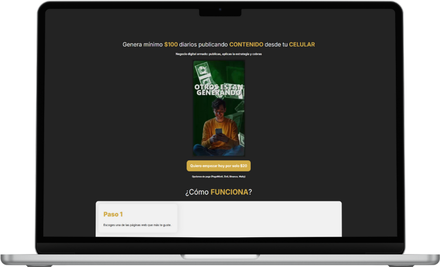 Negocio digital armado: publicas, aplicas la estrategia y cobras